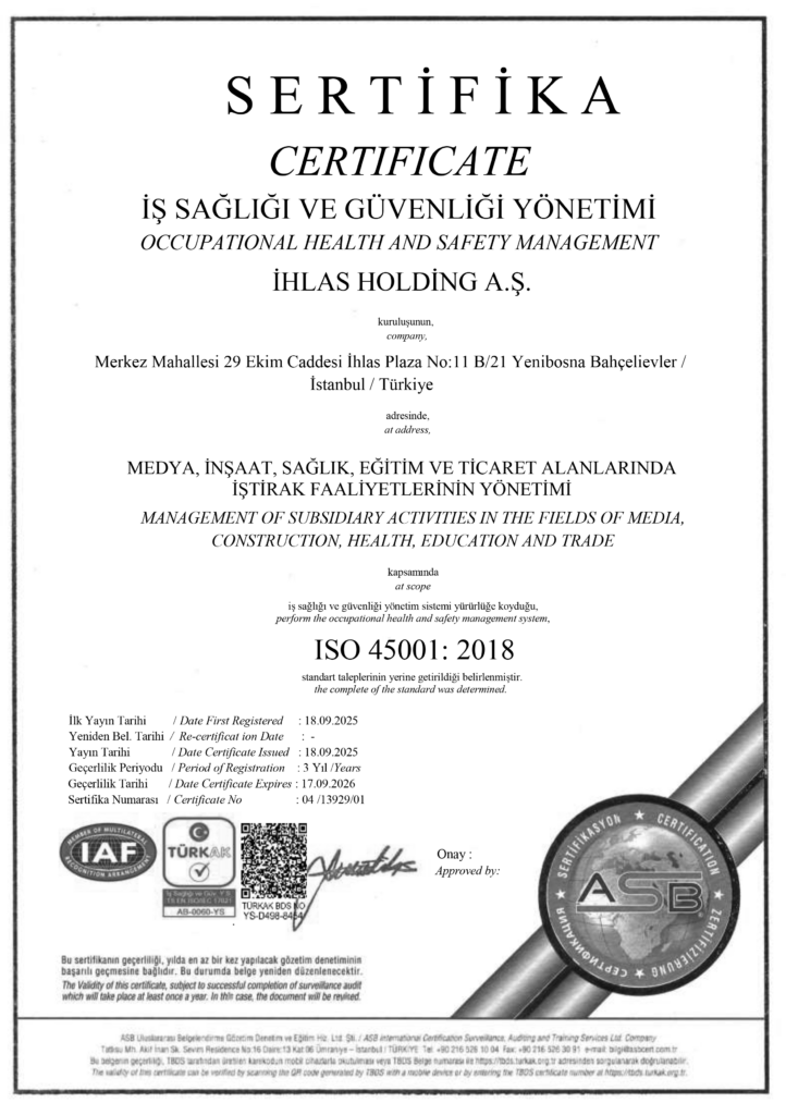 İhlas Holding prioritizes Occupational Health and Safety as a fundamental right of its employees and incorporates this principle into all its activities.